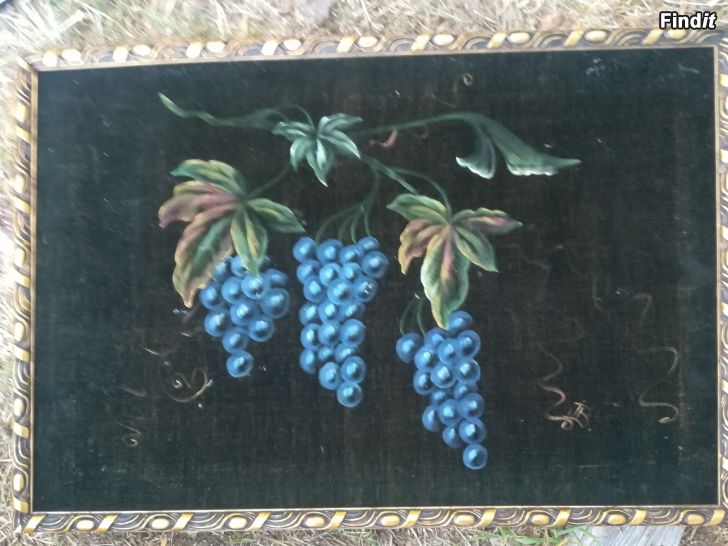 samettipohjalle maalattu pastelli/öljyvärimaalaus, vanha siisti ajalta oleva kehys. Loistava aihe esim ruokailutilan tai keittiön seinälle