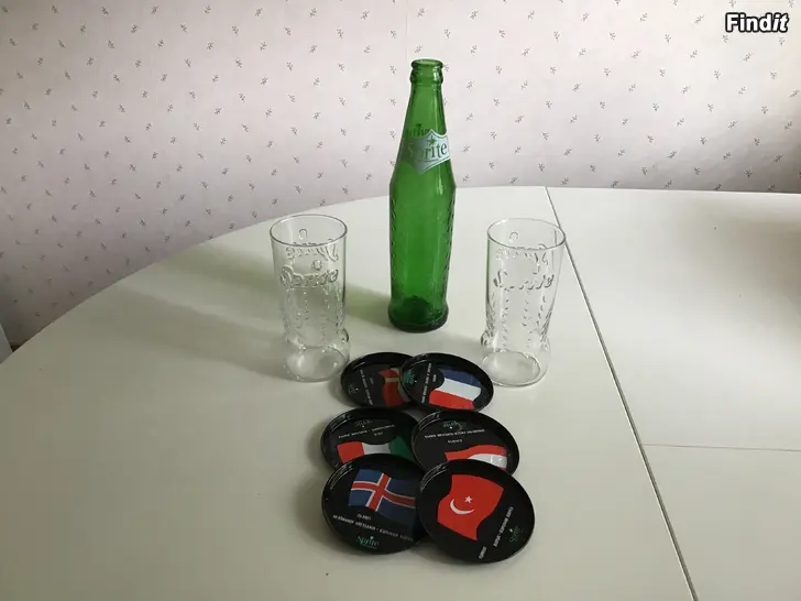 2 st hela och fina Sprite glas Mått 13x6 cm. + Original grön Sprite flaska 6 st Sprite glasunderlägg Pris 7 euro för allt eller BJUD ! Sänds ej. Kontantbetalning Se även mina övriga annonser