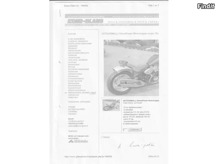 En speedway moped. Den får ej användas i trafik. Har inte körts på mycket länge. Motorn är i skick men acku o litet annat bör fixas. Finns i Böle i Västerängen. Motorn 72 cc fyrtakt. Fyra växlar. Framtill skivbromsar, baktill trumbromsar.Vikt 57 kg, sitthöjd 60 cm