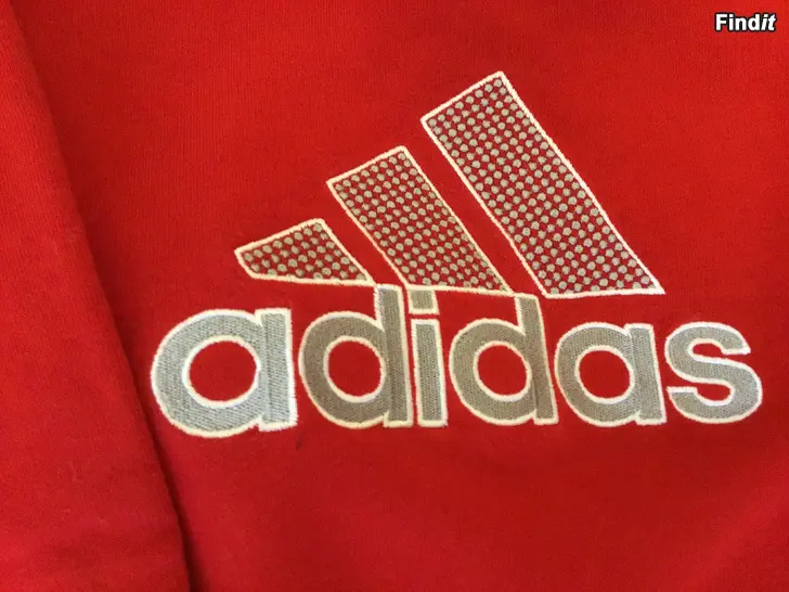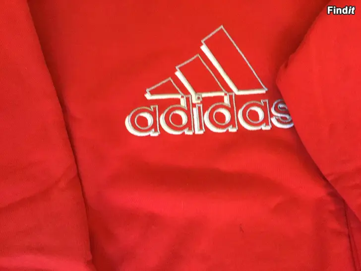 2 st collegetröjor i kraftig 100 bomull, Adidas, röda med ovanligt vackra ”broderier” i silvervitt. Ena 164, till vänster, och den andra S. Oanvända. 20,-/st, 30,- för båda.