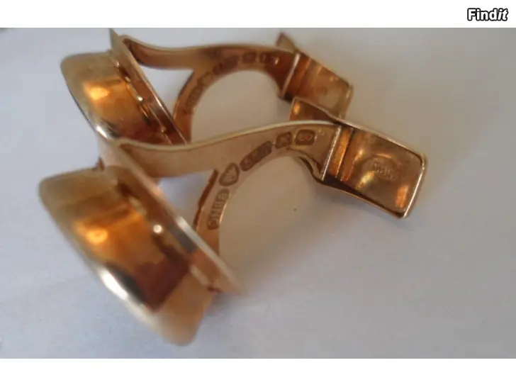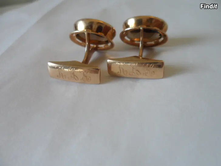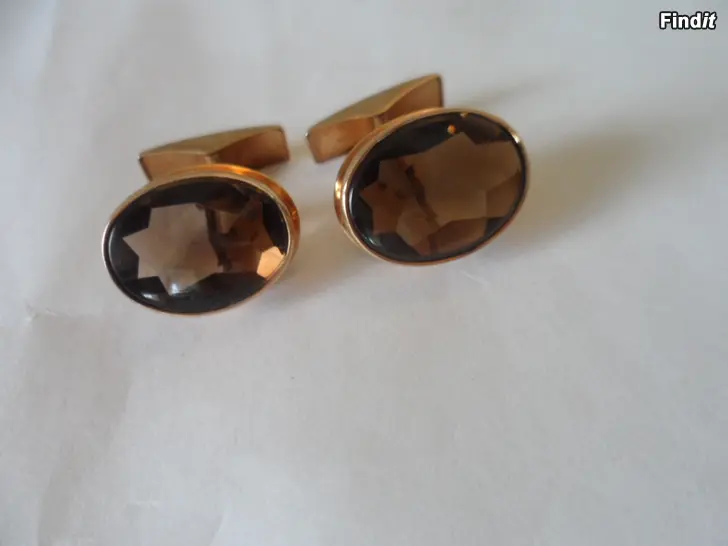 Kultaiset kalvosinnapit, ehjät ja puhtaat savukvartsi-kivet, 14 karaatin kultaa