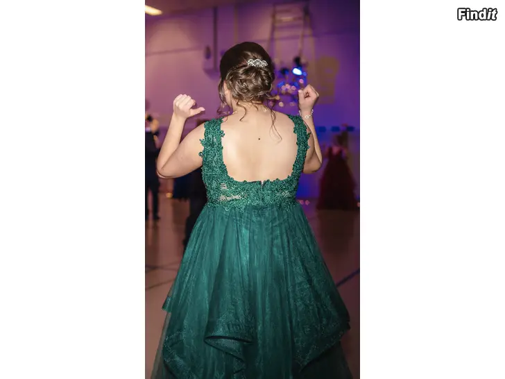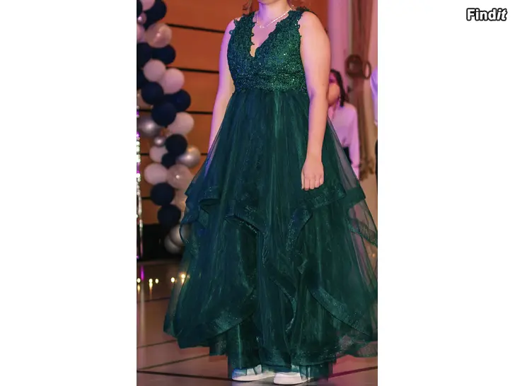 Säljes mörkgrön äldstes dans klänning i storlek L, stor i storleken. Använd endast en gång - nyskick. Klänningen är uppsydd och passar till ca 165 cm lång.