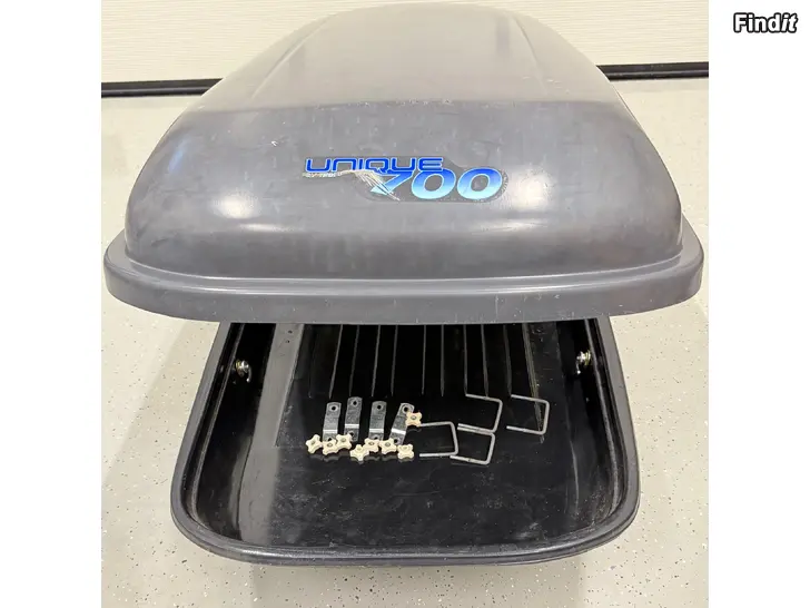 Takbox av märket Unique 700 säljes. Boxens yttermått är ca 230 x 70 x 30 cm. Varit på biltaket endast några gånger. Färg: grå.