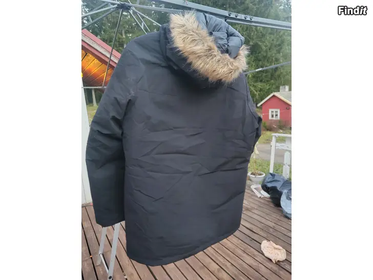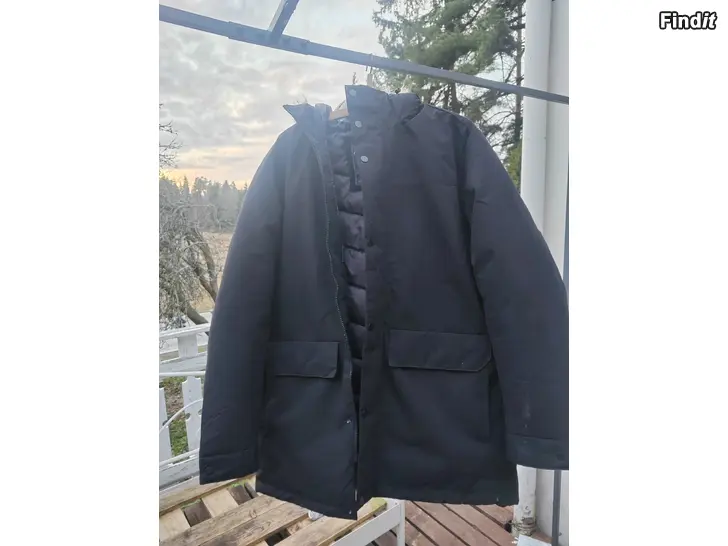 Miesten uusi musta parka talvitakki koko kerran kokeiltu päällä