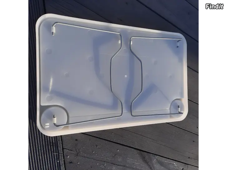Vitt bord med utfällbara fötter eller bara att ha som en större bricka, t.ex i sängen.
