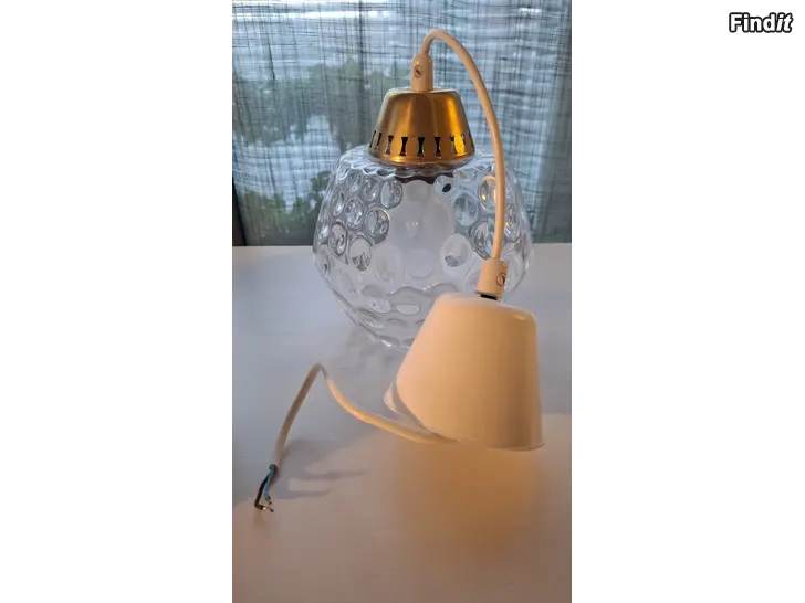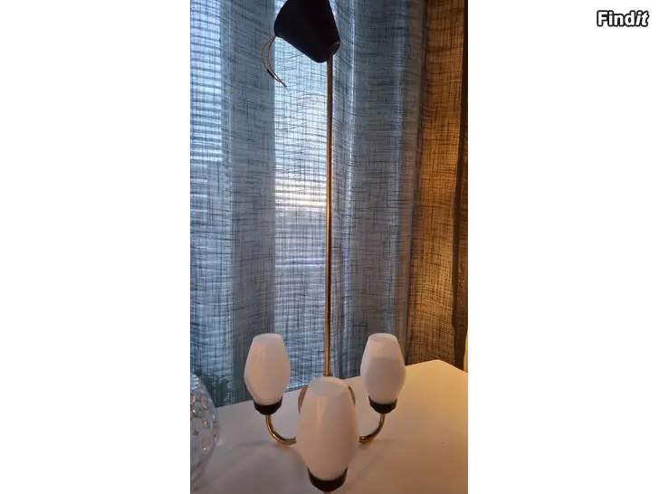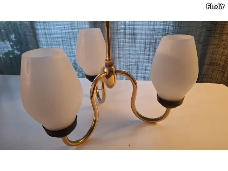 Den till vänster är också i glas. Den trearmade lampan i mässing har matta opalglas.