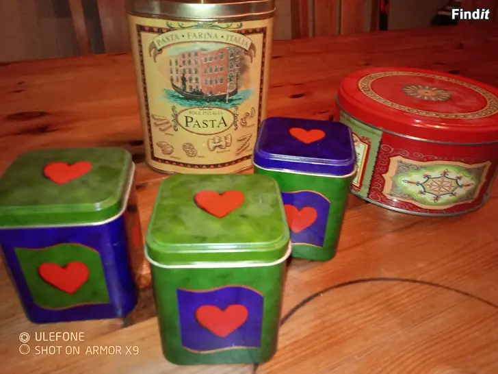 Alla hela och rena, samtliga har lock. Använts till livsmedel te, pasta och kakor.