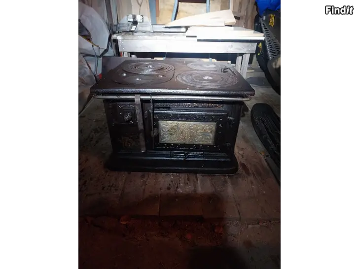 Högfors 6 i gott skick säljes. Vedspisen är putsad och behandlad med gammaldags spissvärta. En liten spricka på vänstra sidan se foto.