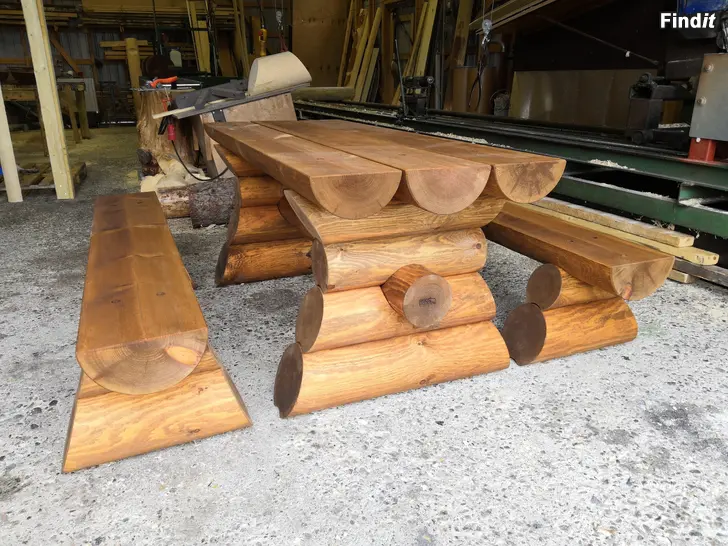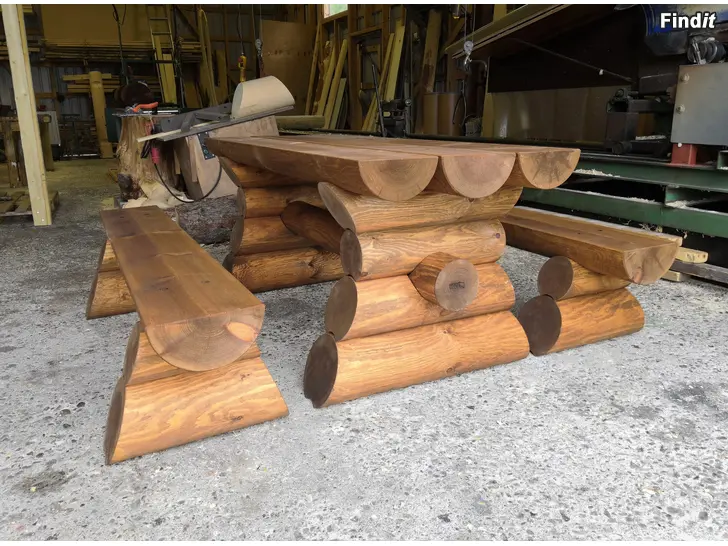 Kannet ja istuimet tehty massiivisista hirrenpuolikkaista, jotka antavat tälle hirsikalusteelle mahtavan ulkonäön! Myös alatukihirret ovat isompaa kokoluokkaa!