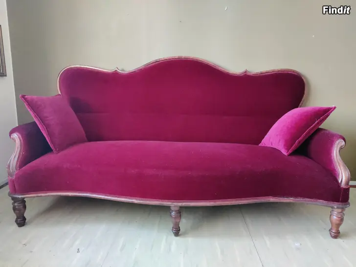 Säljes en rokokosoffa i mycket bra skick. Klädd med djupröd sammet mörkare än på bilden. Längd 194, höjd 100 och djup 85 cm.