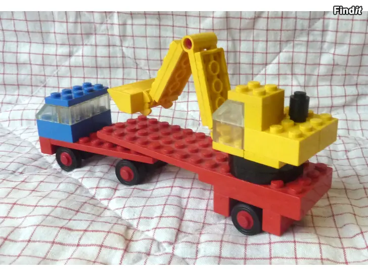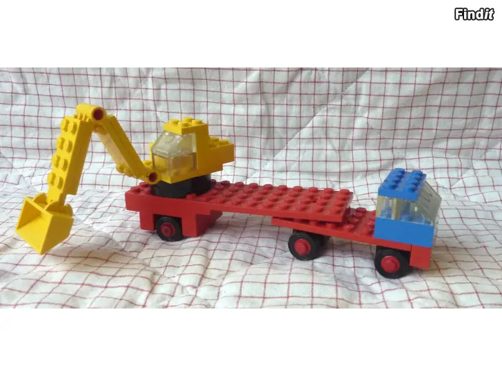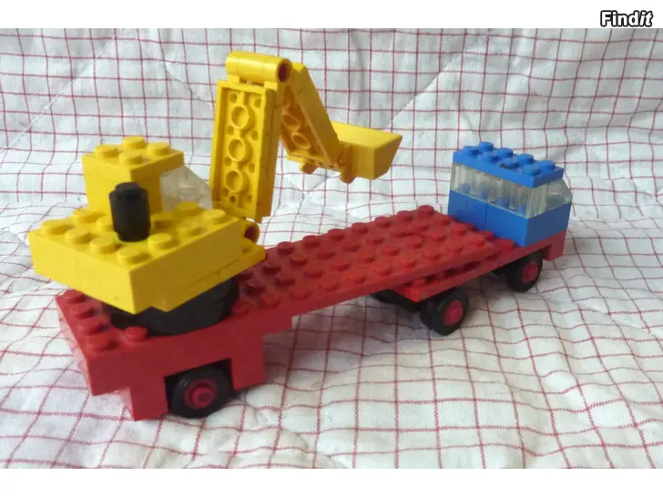 myyn kuvissa näkyvän vanhan Lego rekan, jossa mukana kaivinkone.