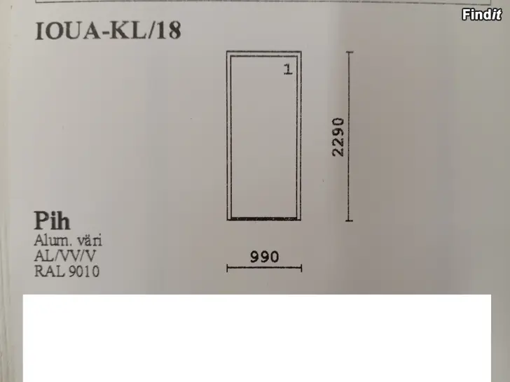 - Terassdörr Pihla, IOUA-KL, 990x2290, Höger, Vit