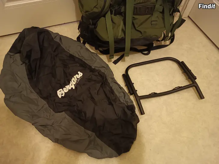 Riktig expedition ram ryggsäck, Bergans Powerframe, 130 liter, går att ta av sidofacken för att göra en mindre tur ryggsäck, tillbehör som kommer med är ett regnskydd och en ram förlängnings del som man kan fästa på toppen av ryggsäcken för ennu mera lastkapacitet. Nyskick, nypris utan tillbehör är 499 euro