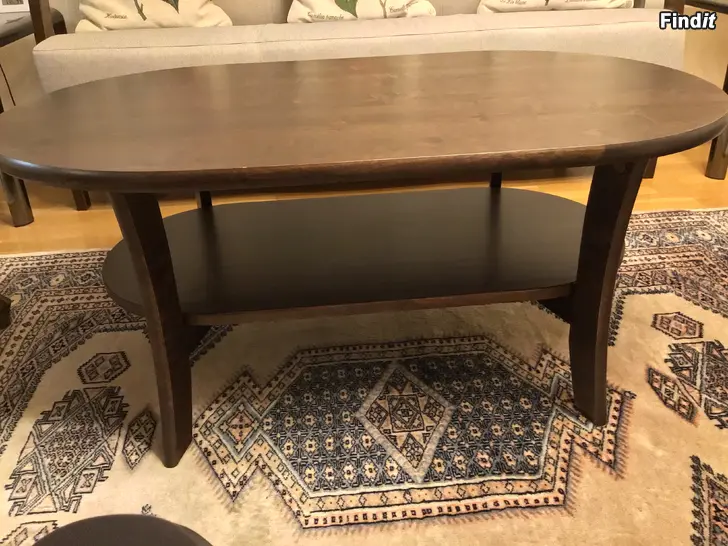 Ett soffbord i fint skick, knappt varit i bruk, Sotkas Milla, ovalt, skiva 110 x 65. Höjd 45.