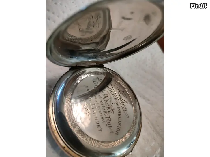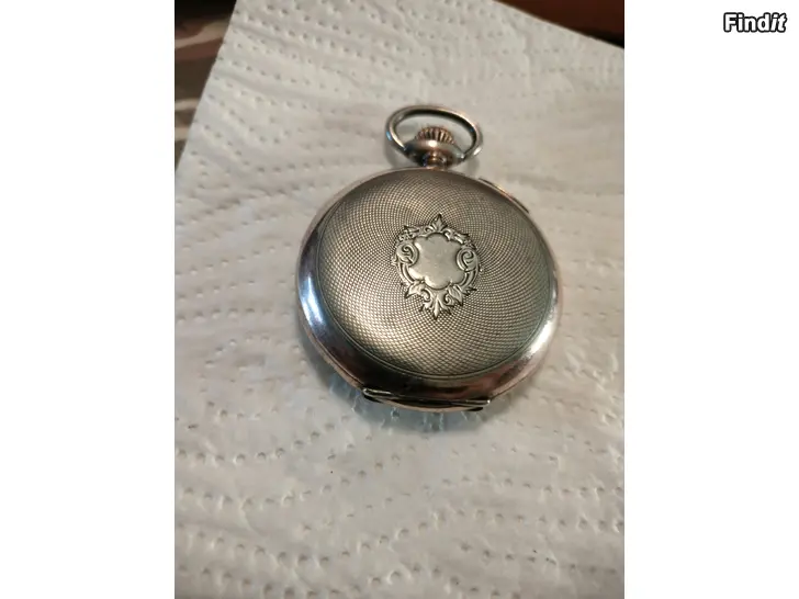 Siisti toimiva taskukello, kynsi viisarisiirrolla, 1900 luvun alusta. Kuoret hopeaa välikuorikin, nimi löytyy koneesta ja välikuoresta.