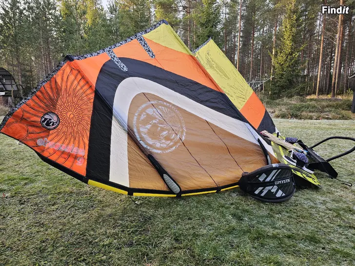 Använt men väl fungerande kitepaket med 9mm² RRD kite, RRD bräda, RRD bom, Mystic sele och Slingshot pump.