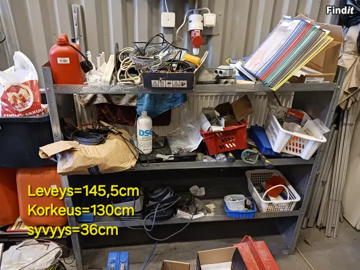 Toinen hylly hieman antaa periksi sivuttain eli peltien kulmat löystyneet/hieman irti. Hitsaamalla saa tukevammaksi tai laittaa jonkun muun tuen antaa sivuttaistukea. Hyllyt purettu transisista. Hyllyt 2 eri osassa voi pinota.
