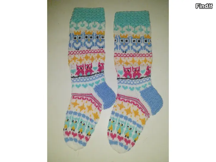 Villasukat Novitan Nalle langasta. Varren mitta 33cm ja jalkaterä 24 cm. Postikulut tarvittaessa 6e