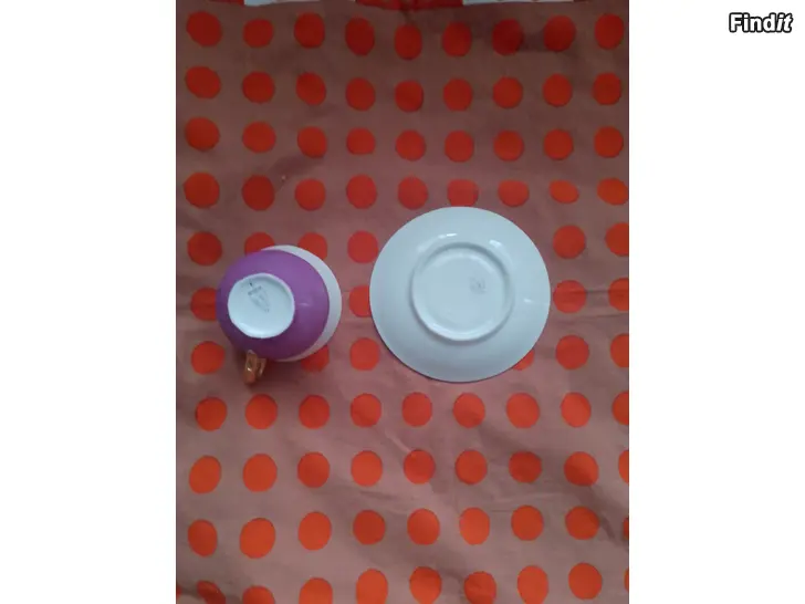 Arabian kultaisilla reunoilla olevat piippuleimalliset ehjät kahvikupit ja lautaset ilman säröjä 11kpl