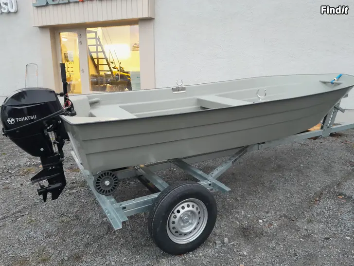 Lahja idea. Vene ja perämoottori vaimolle ja lapsille. Konkurssipesä myy joulukuun hintaan sopivasti.