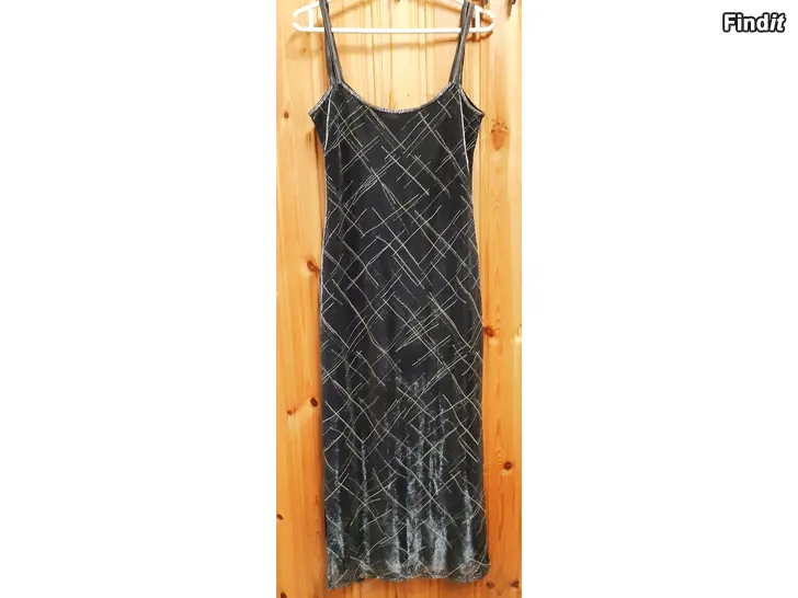 Musta pitkä lame mekko vuorilla, lyhyt halkio sivussa koko S