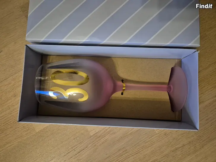 Fin 30-årspresent. Nytt rosa glas med guldfärgade siffror. Höjd 23 cm. Finns i Smedsby. Postar inte. MobilePay eller kontant