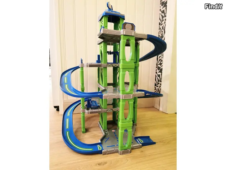 Stort bilgarage med fem våningsplan, med tankning, service, biltvätt. Komplett och helt.