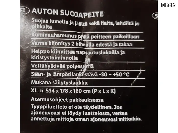 Ultimate Speed Full Car Cover XL -Auton suojapeite musta, valmistettu vettä hylkivästä, kestävästä polyesteristä. Sään- ja lämpötilankestävä: -30 - +50 Uusi/käyttämätön avattu vain paketistaan, kokeiltu auton päälle ja todettu liian isoksi.