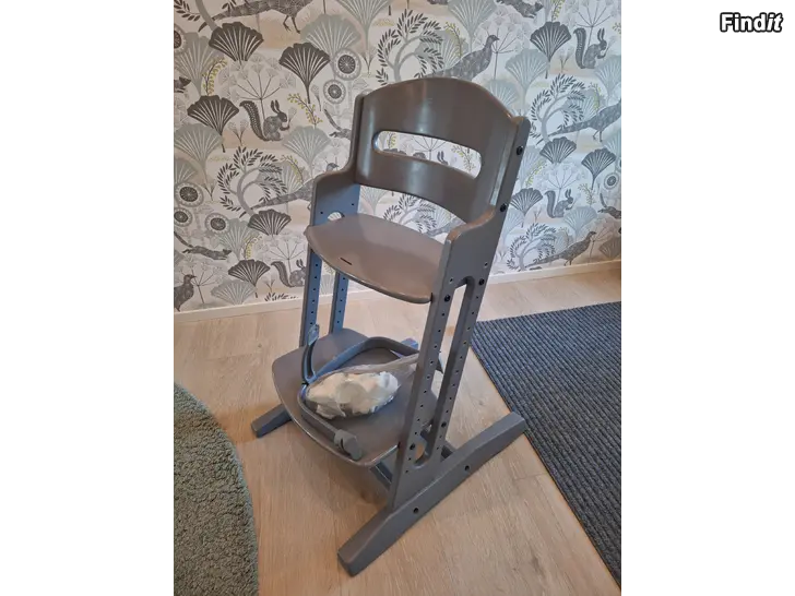 Barnstol som använts av ett barn. Bra skick. Inklusive bygel och rem.