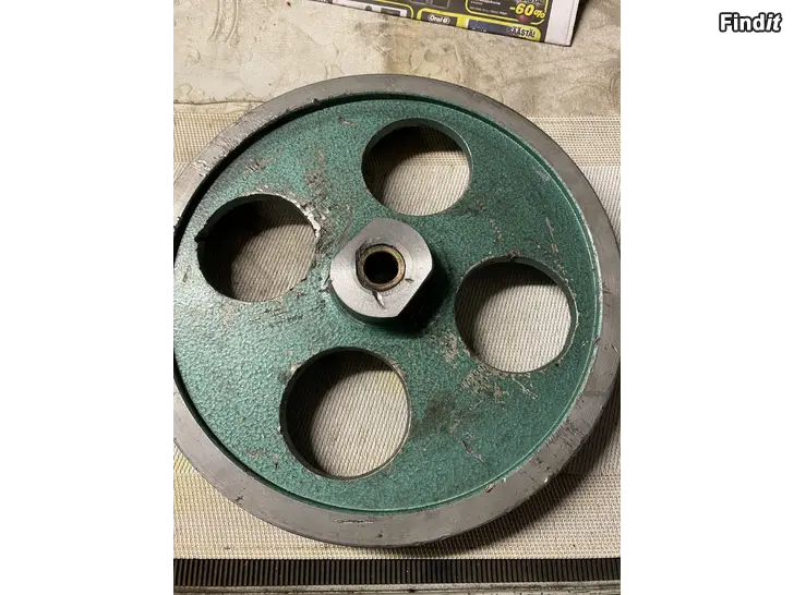 Toinen noin 300mm, normaali keskiö, reikä 20mm, kaksi urainen, alumiini, hinta 25€ on ilmeisesti ollu paineilmakompressorissa