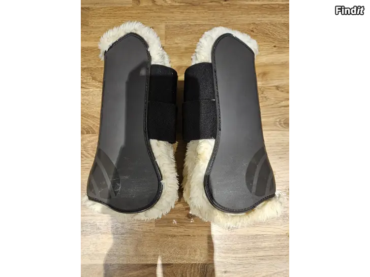Vain yhden talven käytössä olleet Horze Caliber tummanruskeat jännesuojat teddyvuorilla. Vain vähän hiertymää ja tarrat kuin uudet. Pesty. Koko full.