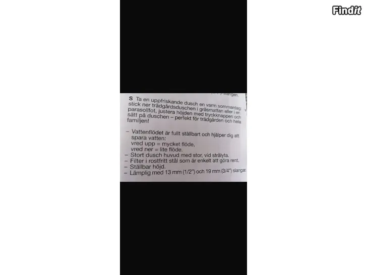 Gardena Solo Trädgårdsdusch artikelnr 961 -stick ner trädgårdsduschen i gräsmattan eller i en parasollfot -justera höjden -koppla trädgårdsslang och duschen är klar att användas
