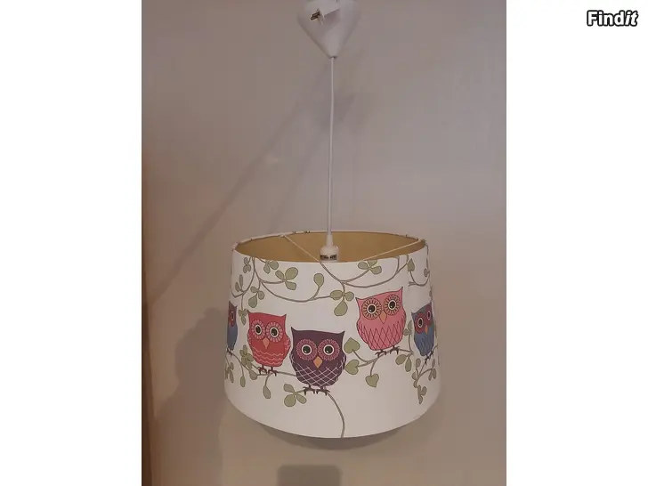 Säljes en fin taklampa med ugglemotiv finns en minimal spricka i skärmen om man kollar inne i skärmen men den syns inte utifrån. Skärens diameter 35cm Finns i Vikby Pris 20€