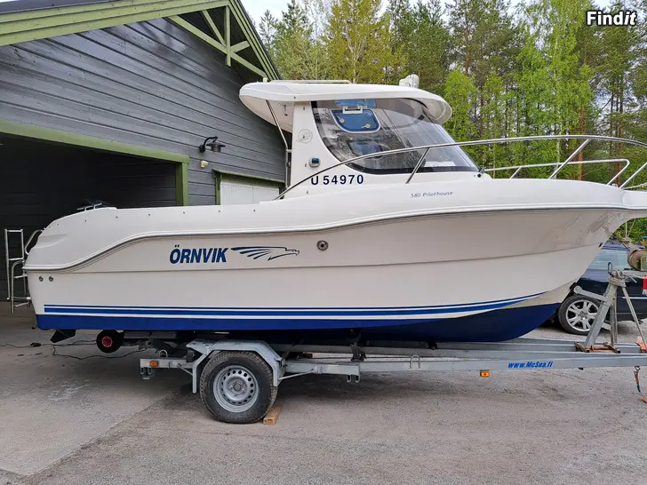 Söker främst byte mot båt billigare eller dyrare! Har en Örnvik 580 Pilot House som jag vill byta till en annan båt pga att jag slutat med laxtrolling. Årsm 2010, motor Mercury 4t 100 hk 2010 körd 145 timmar. Allt som behövs finns: värmare, Garmin sgs ny 10 plotter och ekolod. Garmin autopilot nyinstallerad. Kokplatta, dynor, bord och fiskrensingsbord, kapell för bakdäcket, sovplatser för två eller tre. Ankaren och förtöjningslinor, fendrar. Belysning i hytt och på bakdäck. Trollingutrustning om du behöver eller så inte. Funkar bra som familje- och utflyktsbåt, går bra i sjön. Tänker mig ett bytespris på ca 18000 beroende på utrustning. Finns också till tillägspris trailer vars besiktning gick ut vid årsskiftet men den är i felfritt skick och kan besiktas då båten sjösatts. Båten har stått på land två somrar fulltankad, kört konserveringsmedel genom den. Kan skicka fler bilder om intresse finns och vädret tillåter att ta bort presenningen.
