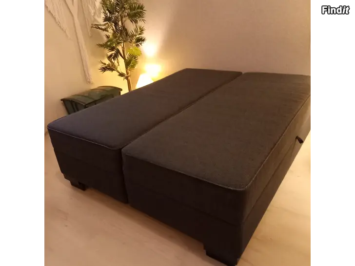 Myydään erittäin hyväkuntoinen, siisti ja tukeva laatikkosänkykokonaisuus muuton alta. Patjat aika kovat, mukaan siisti, yhtenäinen petari.
