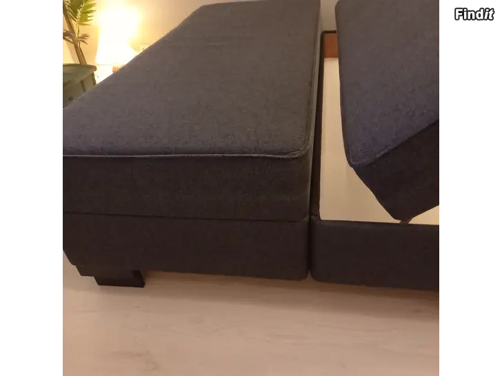 Kaksi erillistä sänkyä, joissa molemmissa oma säilytyslaatikko, aukeaa pitkältä sivulta. Keskiosassa yhtenäinen tukijalka. Uutena ostettu. Vastaavan kokonaisuuden tarjoushinta 1590e. Nyt Seinäjoella, mutta kulkeutuu Vaasaan.