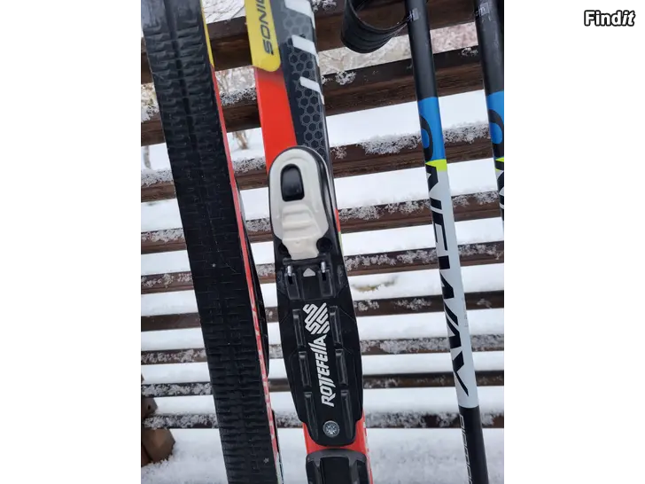 Säljes skidor med NNN-bindning, köpta nya och använda sparsamt av 2 barn. 110cm.