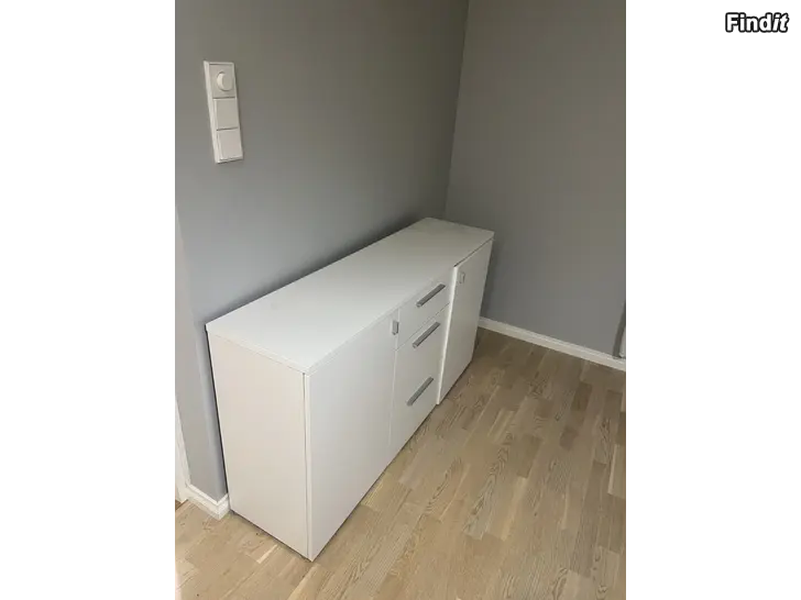 Tv bord med 3 utdragbara lådor och 2 skåp.