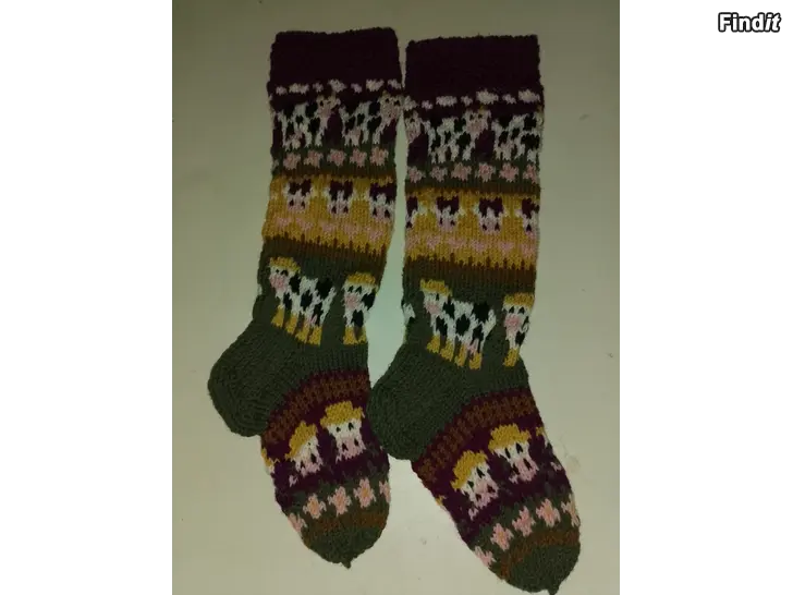 Villasukat 7 veljestä langasta. Varren mitta 36 cm ja jalkaterä 25 cm. Postikulut tarvittaessa 6e Postin s-kokoisessa paketissa manner-Suomen alueella. samaan pakettiin mahtuu muutakin.