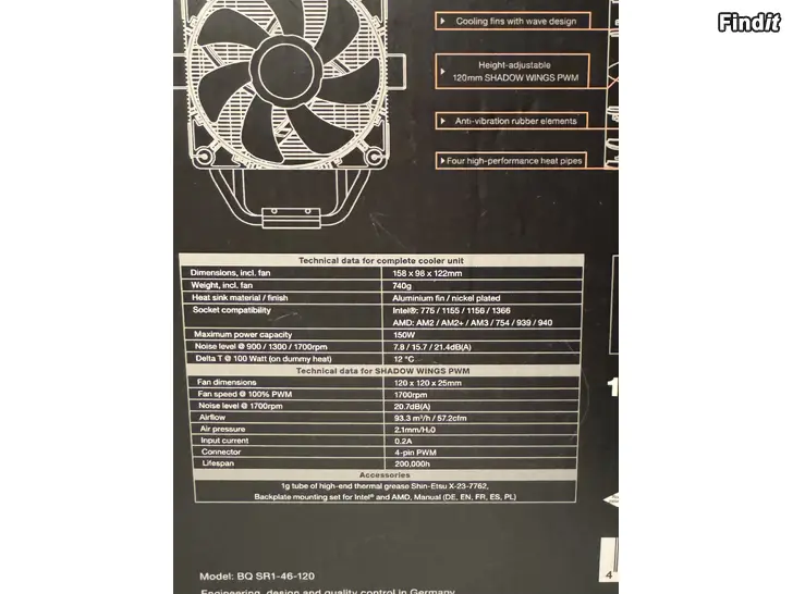 Säljes en be quiet! Shadow Rock Pro 150W TDP cpu-cooler.
