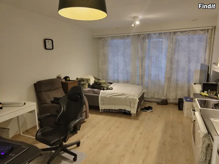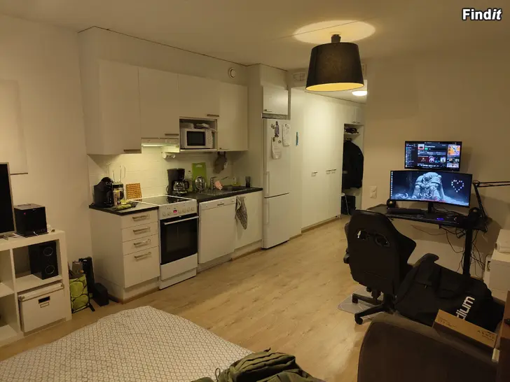 Uthyres 1 rum + kök + bastu, 31 m2 på Thomasgränd 1. Utrymme för tvättmaskin i badrummet. Bilplats med motorvärmarstolpe.