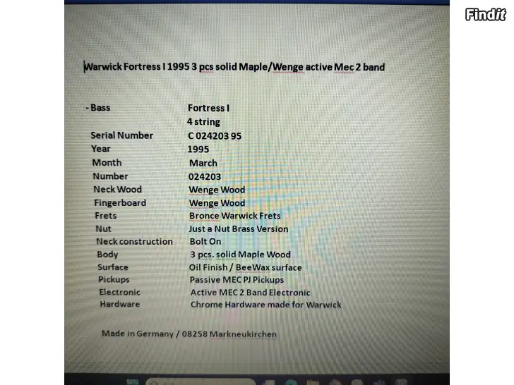 Säljes mycket fin Warwick Fortress One 1995 aktivbas 4 str. Maple/Wenge. Lite spelad, banden som nya. Banden, greppbrädet, elektroniken upputsade å nya Warwick strängar. Halsen justerad lättspelat och intonering gjord. Säljes med originala straplocks. Denna stiger endast i pris.