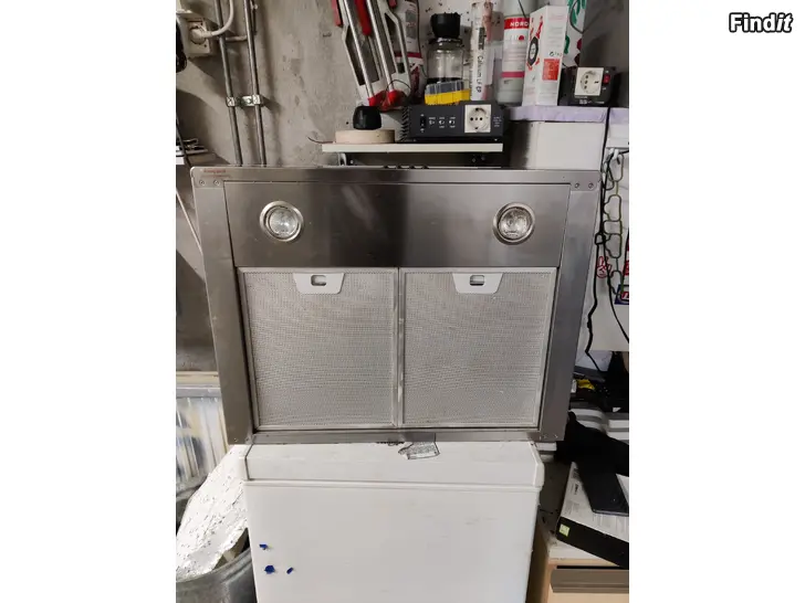 Täysin toimiva tehokas rosterin värinen liesituuletin. Suodattimet pesty ja lamput vaihdettu hiljattain, 3 nopeuksinen moottori. Perhospelti mukaan.