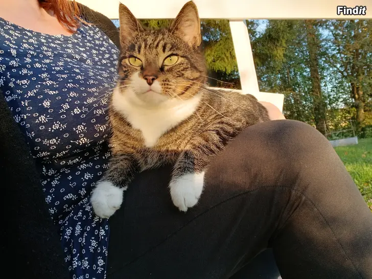En härlig frass på 5 år söker ett nytt, kärleksfullt hem, pga allergi. Han behöver få vara ute, fångar bra med möss, som han stolt visar upp. Han njuter av att vara i famnen och bli pajjad. Väldigt social, tom byggmännen var hans bästa polare. Trivs dock inte så mycket med andra katter. Kastrerad.