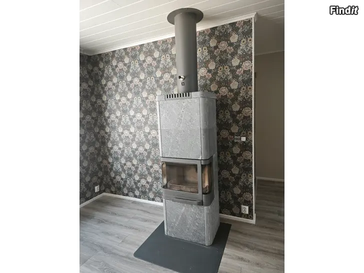 En Contura 26t spis inklusive skorsten 3 m och plåtbekläknad på taket till salu