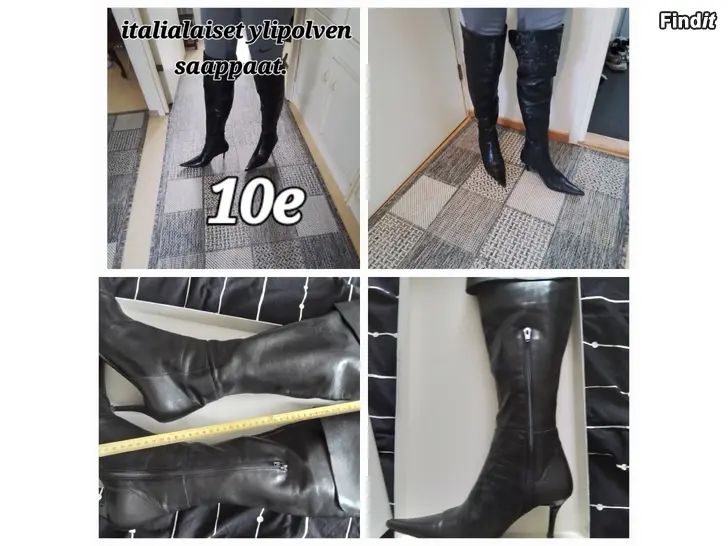 Mustat ylipolven nahka saappaat 50e,italialaiset 10e