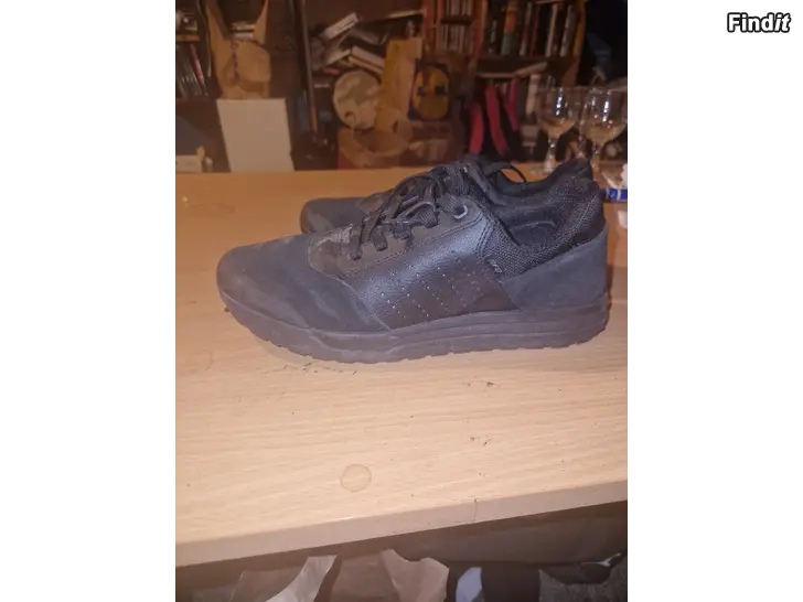 - Svarta sneakers i mocka och textil