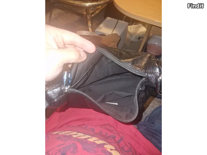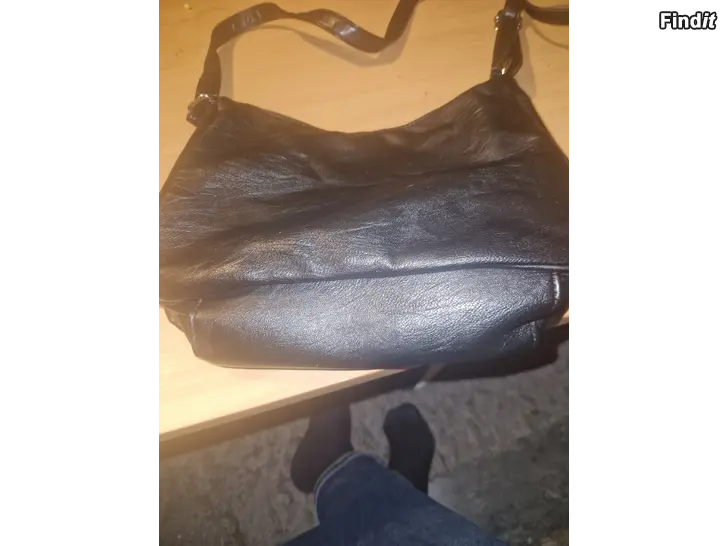 - Svart axelväska i skinn med dragkedjor