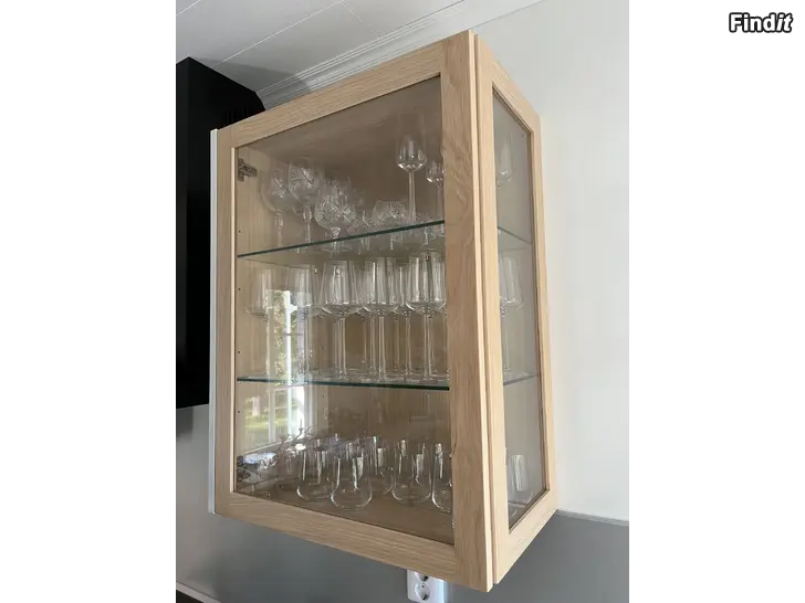 Säljes pga fel köp nya Puustelli övreskåps stommar o luckor, exempel som bilden men kan ju förstås monteras spegelvänt, från hörnet Mått till vänster 1750 höger 1050 samt en vitrin på 600 höjden 710 djup 350