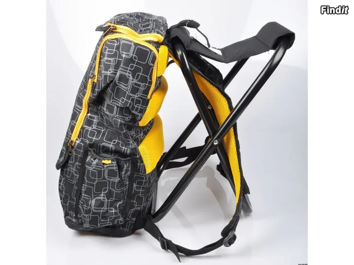 Tilaa n. 20:lle kiekolle. Mukana retkituoli, joka on kiinnitetty selkäpuolelle.